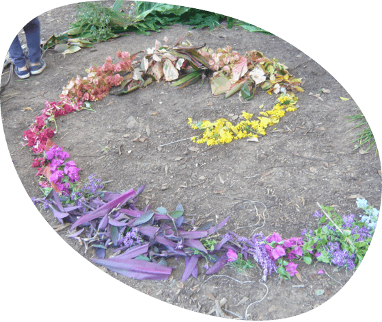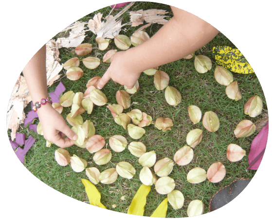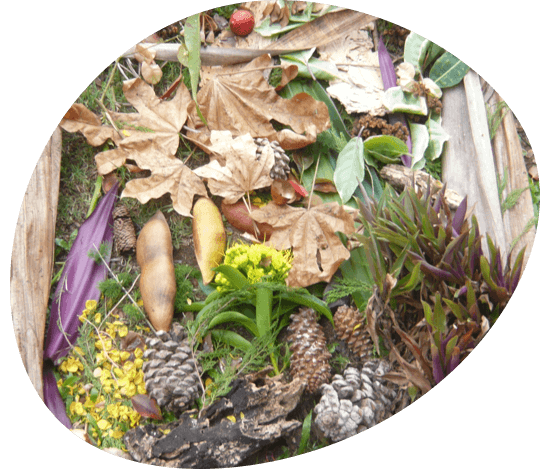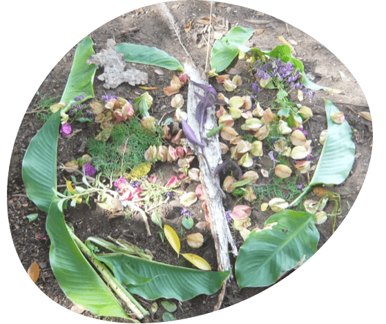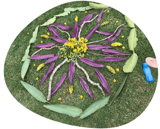 Children learn about the wide array of colours, shapes and textures found in Mother Nature through design challenges and games. Working collaboratively or individually, children make beautiful art installations comprised of bark, berries, leaves, seed pods, branches, pebbles, and the like. Plant materials are supplied and where possible gathered from the school grounds. The art installations can be left in place as a gallery to inspire others.