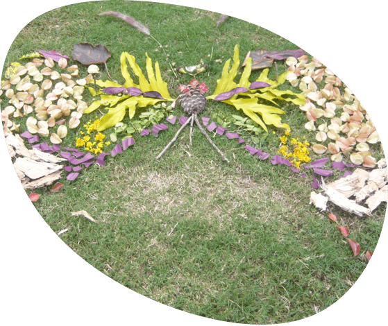 Children explore about the life-cycle of the butterfly and learn about nature’s astonishing art palette through design exercises exploring symmetry, tone, texture, shape and colour. This sets the foundation for designing and making butterfly pictures comprised of colourful botanical materials. Children work in pairs learning the art of collaboration and their creations become an outdoor gallery to inspire others.