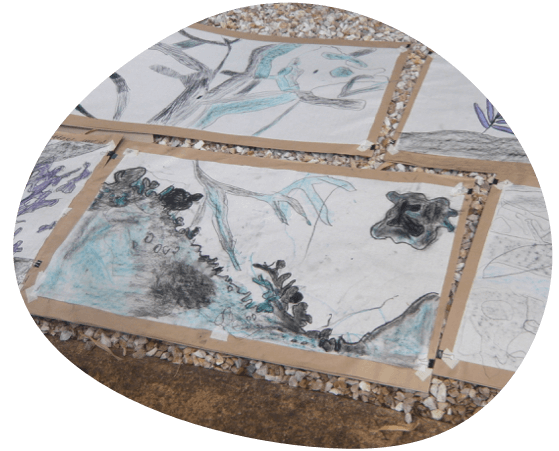 In this evocative exploration into the patterns cast by the sun’s shadows, children learn about solar movement, and the flora around them. Extending their visual arts skills, children work in pairs to trace nature’s cast shapes directly onto scrolls of paper with wax crayons. Once complete, the drawings make a striking installation of hanging drawings for all to enjoy. This program needs a sunny day!