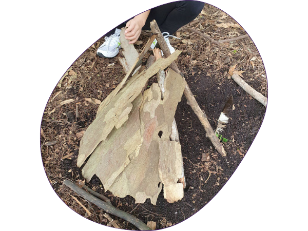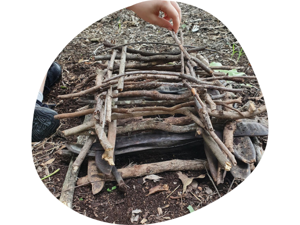 Through a series of fun exercises, this program challenges children to ‘engineer’ an original structure, using just bare hands and nature’s gifts of sticks, twigs and bark. This activity often continues after the program is over as the structures get added to, fall over, get rebuilt or evolve into a miniature village!